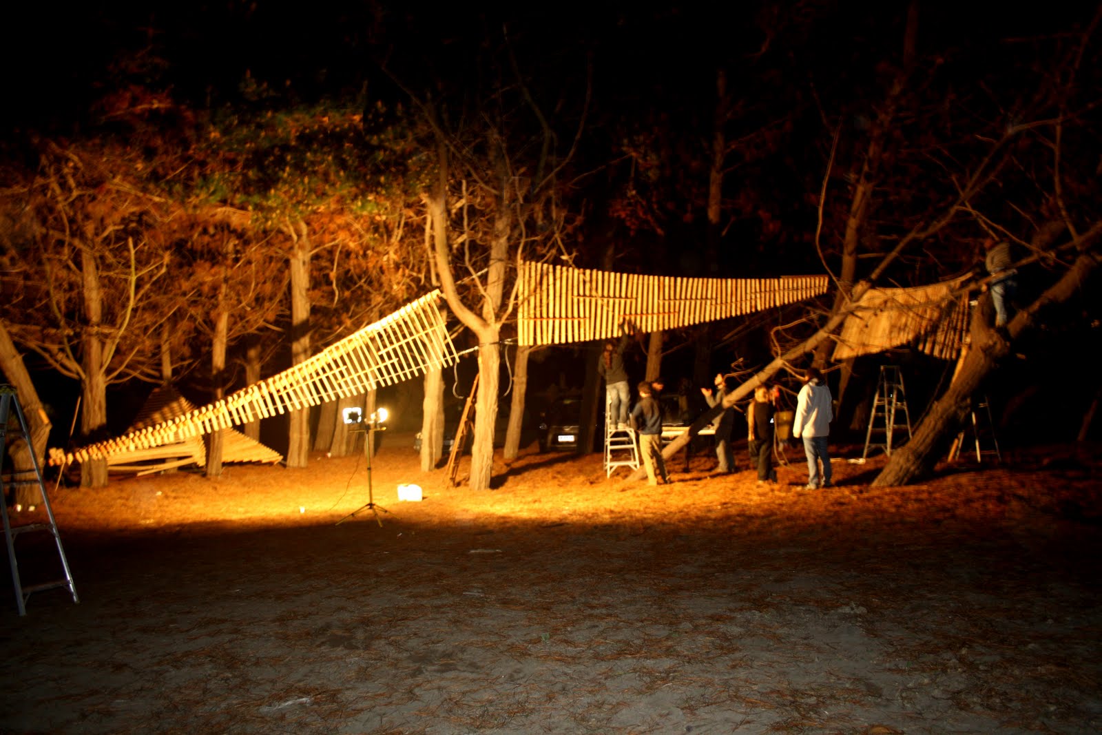 Last 12th of August finished the AA Visiting School Politics of Fabrication Laboratory at the Open City, Ritoque, Chile. The results have been impressive with a final structure built in the natural environment. "Ceiling meeting point" was the chosen design created by digital tools, Rhino and Grasshopper, and translated into traditional building techniques specific to the place in wood. The interesting mix of nationalities and backgrounds of the participants made possible this beautiful result, an installation that will naturally decay over the years in this Chilean landscape.